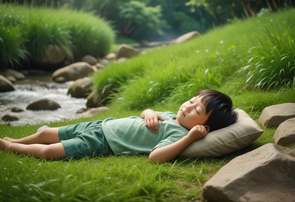神让我躺卧在青青的草地上,他让我安歇在平静的水边。他使我的灵魂苏醒,他引导我走对的路,神的伟大的爱在我的平安中变的更加圆满。